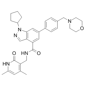 SMILESCC1=CC(C)=C(CNC(=O)C2=C3C=NN(C4CCCC4)C3=CC(=C2)C2=CC=C(CN3CCOCC3)C=C2)C(=O)N1