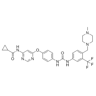 Chemical NameCyclopropanecarboxamide, N-[6-[4-[[[[4-[(4-methyl-1-piperazinyl)methyl]-3-(trifluoromethyl)phenyl]amino]carbonyl]amino]phenoxy]-4-pyrimidinyl]-