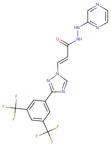 SMILESC1=CN=C(C=N1)NNC(=O)/C=C/N2C=NC(=N2)C3=CC(=CC(=C3)C(F)(F)F)C(F)(F)F