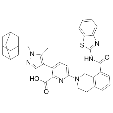Chemical Name2-Pyridinecarboxylic acid, 6-[8-[(2-benzothiazolylamino)carbonyl]-3,4-dihydro-2(1H)-isoquinolinyl]-3-[5-methyl-1-(tricyclo[3.3.1.13,7]dec-1-ylmethyl)-1H-pyrazol-4-yl]-