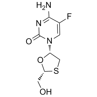 DescriptionA nucleoside reverse transcriptase inhibitor (NRTI) for the prevention and treatment of HIV infection; also exhibits clinical activity against the hepatitis B virus (HBV).HIV Infection Approved(In Vitro):Emtricitabine has in vitro activity against both laboratory strains of HIV-1 and HIV-2 and clinical isolates of HIV-1. The 50% effective concentration (EC50) ranges from 0.002 to 1.5 μ mol/L, depending on the viral isolate and cell line used. Emtricitabine demonstrates in vitro synergy with zidovudine and stavudine and additive in vitro activity when combines with zalcitabine or didanosine.(In Vivo):Reproductive and developmental toxicology studies are conducted with emtricitabine. Oral doses up to 1000 mg/kg/day provided daily area under the curve (AUC0→24) exposure to pregnant animals approximately 60- (mice) to 120-fold (rabbits) higher than that in humans at the recommended dose of 200 mg given once per day. In a mouse fertility study, emtricitabine had no effect on fertility, sperm count, or early embryonic development. There is no increased incidence of malformations in mouse and rabbit embryofetal toxicology studies. The development and fertility of F1 progeny are unaffected by emtricitabine in a mouse pre- and post-natal study. These data demonstrate a favorable pre-clinical reproductive safety profile for emtricitabine.