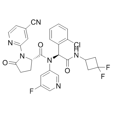 Chemical NameGlycinamide, 1-(4-cyano-2-pyridinyl)-5-oxo-L-prolyl-2-(2-chlorophenyl)-N-(3,3-difluorocyclobutyl)-N2-(5-fluoro-3-pyridinyl)-, (2S)-