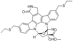 SMILESO=C([C@]1(O)[C@@](O2)(C)N3C4=CC=C(CSCC)C=C4C5=C3C6=C(C7=CC(CSCC)=CC=C7N6[C@@]2([H])C1)C8=C5CNC8=O)OC