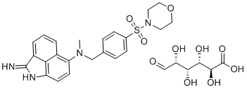 SMILESO=S(N1CCOCC1)(C2=CC=C(CN(C3=CC=C4N=C(N)C5=CC=CC3=C54)C)C=C2)=O.O=C[C@@H]([C@H]([C@@H]([C@@H](C(O)=O)O)O)O)O