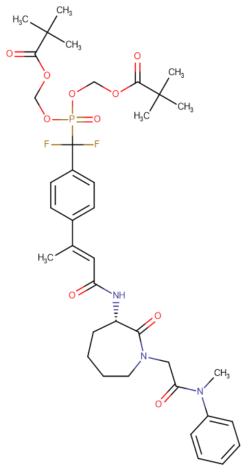 SMILESO=P(OCOC(C(C)(C)C)=O)(OCOC(C(C)(C)C)=O)C(F)(F)C1=CC=C(/C(C)=C/C(N[C@@H]2C(N(CC(N(C)C3=CC=CC=C3)=O)CCCC2)=O)=O)C=C1