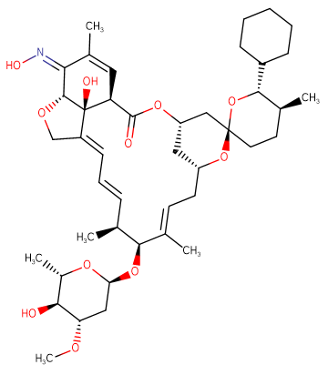 SMILESC[C@H]1CC[C@]2(C[C@@H]3C[C@H](O2)C/C=C(/[C@H]([C@H](/C=C/C=C/4\CO[C@H]\5[C@@]4([C@@H](C=C(/C5=N/O)C)C(=O)O3)O)C)O[C@H]6C[C@@H]([C@H]([C@@H](O6)C)O)OC)\C)O[C@@H]1C7CCCCC7