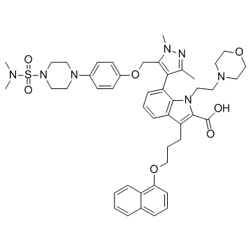 Chemical Name1H-Indole-2-carboxylic acid, 7-[5-[[4-[4-[(dimethylamino)sulfonyl]-1-piperazinyl]phenoxy]methyl]-1,3-dimethyl-1H-pyrazol-4-yl]-1-[2-(4-morpholinyl)ethyl]-3-[3-(1-naphthalenyloxy)propyl]-