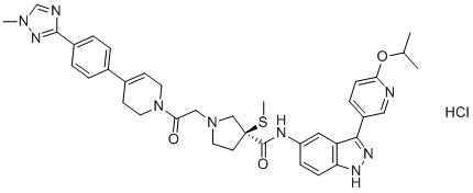 Chemical Name(S)-N-(3-(6-isopropoxypyridin-3-yl)-1H-indazol-5-yl)-1-(2-(4-(4-(1-methyl-1H-1,2,4-triazol-3-yl)phenyl)-3,6-dihydropyridin-1(2H)-yl)-2-oxoethyl)-3-(methylthio)pyrrolidine-3-carboxamide hydrochloride