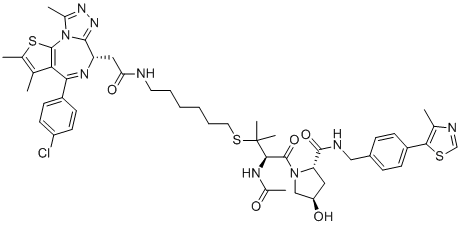 Chemical Name(2S,4R)-1-((R)-2-acetamido-3-((6-(2-((S)-4-(4-chlorophenyl)-2,3,9-trimethyl-6H-thieno[3,2-f][1,2,4]triazolo[4,3-a][1,4]diazepin-6-yl)acetamido)hexyl)thio)-3-methylbutanoyl)-4-hydroxy-N-(4-(4-methylthiazol-5-yl)benzyl)pyrrolidine-2-carboxamide