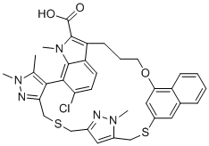 Chemical Name(Z)-16-chloro-11,21,25,61-tetramethyl-11H,21H,61H-10-oxa-4,8-dithia-1(7,3)-indola-2(4,3),6(3,5)-dipyrazola-9(3,1)-naphthalenacyclotridecaphane-12-carboxylic acid