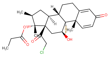 SMILESCCC(O[C@]1(C)[C@@H](C)C[C@@]2([H])[C@]3([H])CCC4=CC(C=C[C@]4(C)[C@@]3(F)[C@@H](O)C[C@]12C(CCl)=O)=O)=O
