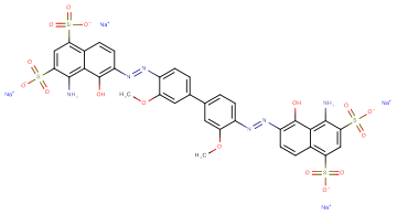 SMILESO=S(C1=C2C=CC(/N=N/C3=CC=C(C4=CC=C(/N=N/C5=C(O)C6=C(N)C(S(=O)([O-])=O)=CC(S(=O)([O-])=O)=C6C=C5)C(OC)=C4)C=C3OC)=C(O)C2=C(N)C(S(=O)([O-])=O)=C1)([O-])=O.[Na+].[Na+].[Na+].[Na+]