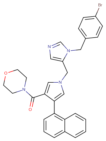 SMILESO=C(N1CCOCC1)C2=CN(C=C2C3=C4C=CC=CC4=CC=C3)CC5=CN=CN5CC6=CC=C(C=C6)Br
