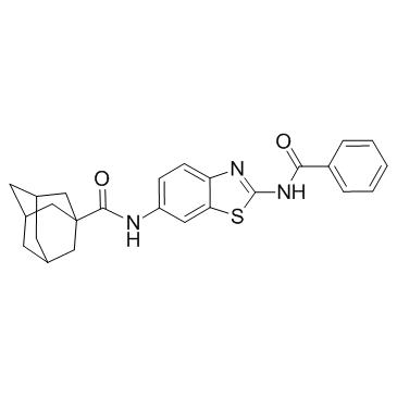 SMILESO=C(C1(C2)C[C@H]3C[C@@H]2C[C@H](C3)C1)NC4=CC=C5N=C(NC(C6=CC=CC=C6)=O)SC5=C4