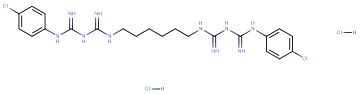 SMILESN=C(NC1=CC=C(Cl)C=C1)NC(NCCCCCCNC(NC(NC2=CC=C(Cl)C=C2)=N)=N)=N.[H]Cl.[H]Cl