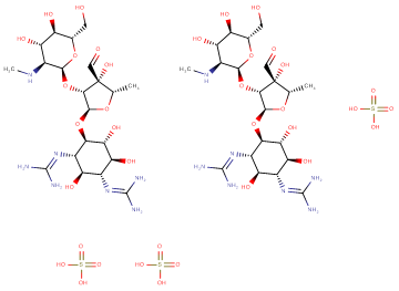 SMILESC[C@H]1[C@@]([C@H]([C@@H](O1)O[C@@H]2[C@H]([C@@H]([C@H]([C@@H]([C@H]2O)O)N=C(N)N)O)N=C(N)N)O[C@H]3[C@H]([C@@H]([C@H]([C@@H](O3)CO)O)O)NC)(C=O)O.C[C@H]1[C@@]([C@H]([C@@H](O1)O[C@@H]2[C@H]([C@@H]([C@H]([C@@H]([C@H]2O)O)N=C(N)N)O)N=C(N)N)O[C@H]3[C@H]([C@@H]([C@H]([C@@H](O3)CO)O)O)NC)(C=O)O.OS(=O)(=O)O.OS(=O)(=O)O.OS(=O)(=O)O