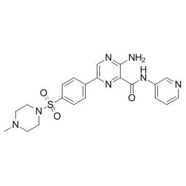 Chemical Name3-amino-6-[4-[(4-methyl-1-piperazinyl)sulfonyl]phenyl]-N-3-pyridinyl-2-pyrazinecarboxamid
