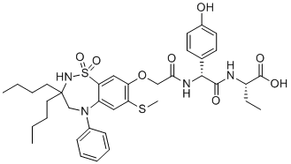 Chemical NameButanoic acid, 2-[[(2R)-[[[[3,3-dibutyl-2,3,4,5-tetrahydro-7-(methylthio)-1,1-dioxido-5-phenyl-1,2,5-benzothiadiazepin-8-yl]oxy]acetyl]amino](4-hydroxyphenyl)acetyl]amino]-, (2S)- (9CI)