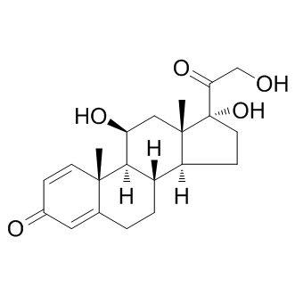 DescriptionPrednisolone is a glucocorticoid with the general properties of the corticosteroids. (In Vitro):Prednisolone (0.002-10 μg/mL; 3 days) inhibits human leukocyte mitosis.(In Vivo):Prednisolone (5 mg/kg/day; p.o.; 6 days a week for 72 weeks) significantly prevents deaths from renal disease in mice.