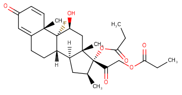 SMILESCCC(O[C@]1(C(COC(CC)=O)=O)[C@@H](C)C[C@@]2([H])[C@]3([H])CCC4=CC(C=C[C@]4(C)[C@@]3(F)[C@@H](O)C[C@]12C)=O)=O