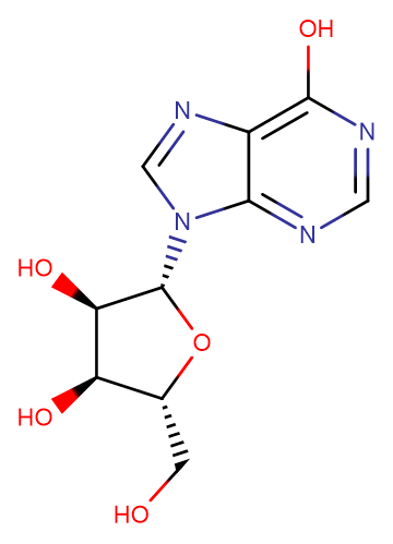 Brief DescriptionA purine nucleoside that has hypoxanthine linked by the N9 nitrogen to the C1 carbon of ribose.