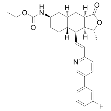 Chemical NameCarbamic acid, N-[(1R,3aR,4aR,6R,8aR,9S,9aS)-9-[(1E)-2-[5-(3-fluorophenyl)-2-pyridinyl]ethenyl]dodecahydro-1-methyl-3-oxonaphtho[2,3-c]furan-6-yl]-, ethyl ester