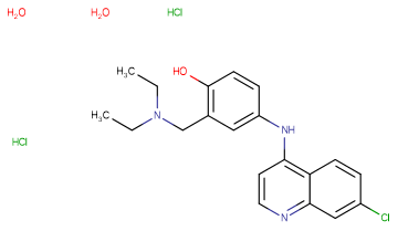 SMILESO.O.Cl.Cl.CCN(CC)CC1=C(O)C=CC(NC2=C3C=CC(Cl)=CC3=NC=C2)=C1