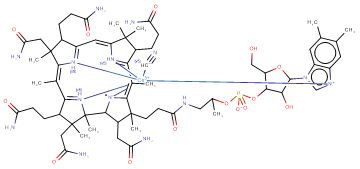 SMILESCc(c(C)c1)cc2c1[n+]3cn2C4C(C(C(O4)CO)OP(OC(CNC(CCC5(C(C6C7(C(CC(N)=O)(C(C8=N7[Co+3]39%10([N-]6C5=C(C%11=N9C(C(C)(C%11CCC(N)=O)C)=CC%12=N%10C(C(CC(N)=O)(C%12CCC(N)=O)C)=C8C)C)[CH-]#N)CCC(N)=O)C)C)CC(N)=O)C)=O)C)([O-])=O)O