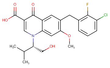 SMILESCC(C)[C@@H](CO)N1C=C(C(=O)C2=CC(=C(C=C21)OC)CC3=C(C(=CC=C3)Cl)F)C(=O)O