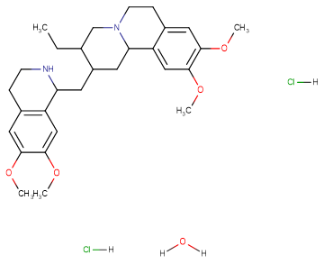 SMILESCOC1=CC2=C(C=C1OC)CCNC2CC3C(CC)CN4CCC5=CC(OC)=C(OC)C=C5C4C3.[H]Cl.[H]Cl.[H]O[H]