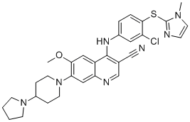 Chemical Name4-[[3-Chloro-4-[(1-methyl-1H-imidazol-2-yl)thio]phenyl]amino]-6-methoxy-7-[4-(1-pyrrolidinyl)-1-piperidinyl]-3-quinolinecarbonitrile