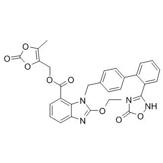 DescriptionA specific and potent angiotensin II type 1 receptor (AT1) antagonist with IC50 of 2.6 nM, used in the treatment of adults with essential hypertension. Hypertension Approved.