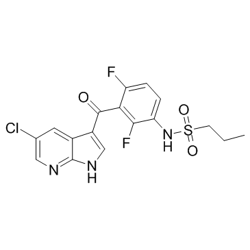 Brief DescriptionA potent and selective inhibitor of B-Raf V600E with IC50 of 13 nM.