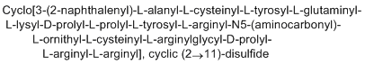 Chemical NameCyclo[3-(2-naphthalenyl)-L-alanyl-L-cysteinyl-L-tyrosyl-L-glutaminyl-L-lysyl-D-prolyl-L-prolyl-L-tyrosyl-L-arginyl-N5-(aminocarbonyl)-L-ornithyl-L-cysteinyl-L-arginylglycyl-D-prolyl-L-arginyl-L-arginyl], cyclic (2?1)-disulfide