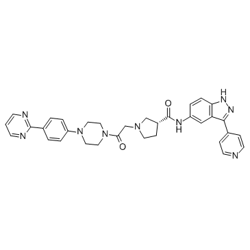 Chemical Name3-Pyrrolidinecarboxamide, 1-[2-oxo-2-[4-[4-(2-pyrimidinyl)phenyl]-1-piperazinyl]ethyl]-N-[3-(4-pyridinyl)-1H-indazol-5-yl]-, (3R)-