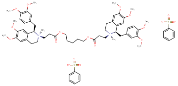 SMILESC[N@@+]1(CCC2=CC(=C(C=C2[C@H]1CC3=CC(=C(C=C3)OC)OC)OC)OC)CCC(=O)OCCCCCOC(=O)CC[N@+]4(CCC5=CC(=C(C=C5[C@H]4CC6=CC(=C(C=C6)OC)OC)OC)OC)C.C1=CC=C(C=C1)S(=O)(=O)[O-].C1=CC=C(C=C1)S(=O)(=O)[O-]