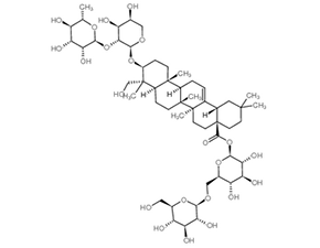 SMILESO1C[C@@H]([C@@H]([C@H]([C@@H]1O[C@@H]1[C@]([C@H]2[C@@]([C@@H]3[C@@](CC2)([C@]2(C(=CC3)[C@H]3[C@@](CC2)(CCC(C3)(C)C)C(=O)O[C@@H]2O[C@@H]([C@H]([C@@H]([C@H]2O)O)O)CO[C@@H]2O[C@@H]([C@H]([C@@H]([C@H]2O)O)O)CO)C)C)(CC1)C)(CO)C)O[C@@H]1O[C@H]([C@@H]([C@H]([C@H]1O)O)O)C)O)O