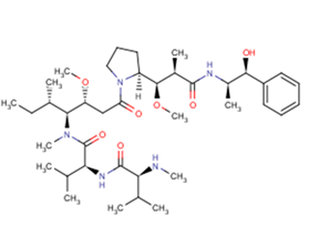 Chemical Name(S)-2-(((3R,4S,5S)-1-((S)-2-((1R,2R)-3-(((1S,2R)-1-hydroxy-1-phenylpropan-2-yl)amino)-1-methoxy-2-methyl-3-oxopropyl)pyrrolidin-1-yl)-3-methoxy-5-methyl-1-oxoheptan-4-yl)(methyl)amino)-3-methyl-N-((S)-3-methyl-2-(methylamino)butanoyl)butanamide.