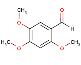 In VitroAsarylaldehyde (2,4,5-TMBA) is a natural COX-2 inhibitor, which isolated from carrot (Daucus carota L.) seeds significantly inhibits cyclooxygenase II (COX-2) activity at the concentration of 100 μg/mL compared to three commercial nonsteroidal anti-inflammatory drugs Aspinin, Ibuprofen, and Naproxen at their IC50 values 180, 2.52, and 2.06 μg/mL, respectively. 2,4,5-TMBA, a natural inhibitor of cyclooxygenase-2, suppresses adipogenesis and oromotes lipolysis in 3T3-L1 adipocytes. 2,4,5-Trimethoxybenzaldehyde (2,4,5-TMBA) present in plant roots, seeds, and leaves is reported to be a significant inhibitor of cyclooxygenase-2 (COX-2) activity at the concentration of 100 μg/mL. Because COX-2 is associated with differentiation of preadipocytes, the murine 3T3-L1 cells are cultured with 100 μg/mL of 2,4,5-TMBA during differentiation and after the cells are fully differentiated to study the effect of 2,4,5-TMBA on adipogenesis and lipolysis. Oil Red O staining and triglyceride assay revealed that 2,4,5-TMBA inhibited the formation of lipid droplets during differentiation; moreover, 2,4,5-TMBA down-regulated the protein levels of adipogenic signaling molecules and transcription factors MAP kinase kinase (MEK), extracellular signal-regulated kinase (ERK), CCAAT/enhancer binding protein (C/EBP)α, β, and δ, peroxisome proliferator-activated receptor (PPAR)γ, adipocyte determination and differentiation-dependent factor 1 (ADD1), and the rate-limiting enzyme for lipid synthesis acetyl-CoA carboxylase (ACC). In fully differentiated adipocytes, treatment with 2,4,5-TMBA for 72 h significantly decreased lipid accumulation by increasing the hydrolysis of triglyceride through suppression of perilipin A (lipid droplet coating protein) and up-regulation of hormone-sensitive lipase (HSL). When treated with 100 μg/mL of 2,4,5-TMBA for 24, 48, or 72 h, the viability of fully differentiated 3T3-L1 adipocytes is decreased by 8.35, 15.54, and 27.26%, respectively. When the preadiocytes are treated with 100 μg/mL of 2,4,5-TMBA for 24 h before differentiation medium is supplemented, the cell viability is decreased by 26.46%. A COX-2 inhibitor 2,4,5-trimethoxybenzaldehyde (TMBA) is found to be the most abundant constituent, but is totally absent in its cultured broth and its natural host, C. kanehirae wood. 2,4,5-trimethoxybenzaldehyde (TMBA) is the major constituent in fruiting bodies.