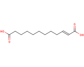 In VitroTraumatic Acid (0.1, 1 μM; 5 days) significantly increases cell number in fibroblasts.Traumatic Acid (0.1, 1 μM; 5 days) increases content of GPX activity and reduced glutathione, as well as decreases membrane phospholipid peroxidation in fibroblasts.Traumatic Acid (0.1, 1 μM; 5 days) enhances the production and secretion of medium collagen in medium of fibroblasts.Traumatic Acid (100, 200, 400, 600 μM; 48 h) significantly decreases live cell number, especially after 48h treatment at 100μM and 200μM in MCF-7 cells.Traumatic Acid (50-600 μM; 24, 48 h) causes dose-and time-dependent reduction in cell viability and induces apoptosis in MCF-7 cells.Traumatic Acid (50-200 μM; 24, 48 h) results in an oxidative damage of protein in MCF-7 cells.Traumatic Acid (100, 200 μM; 24, 48 h) efficiently enhances oxidative stress level in MCF-7 cells.Cell Proliferation AssayCell Line:Fibroblasts Concentration:0.1, 1 μM Incubation Time:5 days Result:Caused a significant increase in cell number, especially on day 1 at a concentration of 1 μM.Increased cell number of 133 % and 118 % compared to the untreated control cells for concentrations of 1 and 0.1 μM, respectively.Cell Viability Assay Cell Line: Fibroblasts Concentration:0.1, 1 μM Incubation Time:5 days Result:Increased total protein content of 183 % and 90% compared to the control at concentrations of 1 and 0.1 μM on day 1.Increased collagen content of 72 % at 0.1 μM (on the day 3) and of 51 % at 1 μM (on the day 1) compared to the control.Increased GPX activity by 111 % and 97 % at concentrations of 1 and 0.1 μM compared to the control.Increased content of reduced glutathione of 86 % and 80% at 0.1 and 1 μM, respectively.Decreased membrane phospholipid peroxidation.Cell Viability Assay Cell Line:MCF-7 cells Concentration:100, 200, 400, 600 μM Incubation Time:48 h Result:Decreasd live cell number of about 76% at 100 μM concentration.Cell Viability Assay Cell Line:MCF-7 cells Concentration:50-200 μMIncubation Time:24, 48 h Result: Increased thiol group content of 167% at 100μM and 24 h.Cell Viability Assay Cell Line:MCF-7 cells Concentration:100, 200 μM Incubation Time:24, 48 h Result:Increased the amount of ROS.Apoptosis Analysis Cell Line:MCF-7 cells Concentration:50-600 μM Incubation Time:24, 48 h Result:Increased level of apoptosis in a time- and dose-dependent manner.