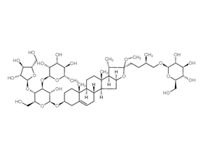 SMILESC1[C@@H](CC2=CC[C@@H]3[C@@H]([C@]2(C1)C)CC[C@]1([C@H]3C[C@H]2[C@@H]1[C@@H]([C@@](O2)(OC)CC[C@H](CO[C@H]1[C@@H]([C@H]([C@@H]([C@H](O1)CO)O)O)O)C)C)C)O[C@@H]1O[C@@H]([C@@H]([C@@H]([C@H]1O)OC1[C@@H]([C@@H]([C@H]([C@@H](O1)C)O)O)O)O[C@@H]1O[C@@H]([C@H]([C@@H]1O)O)CO)CO