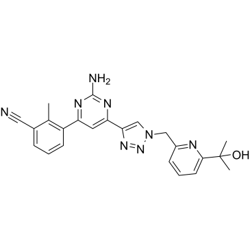 Chemical Name3-[2-Amino-6-[1-[[6-(2-hydroxypropan-2-yl)pyridin-2-yl]methyl]triazol-4-yl]pyrimidin-4-yl]-2-methylbenzonitrile