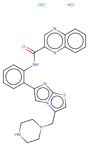 SMILESCl.Cl.O=C(Nc1ccccc1-c1cn2c(CN3CCNCC3)csc2n1)c1cnc2ccccc2n1