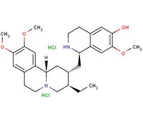 SMILESCl.Cl.[H][C@@]12C[C@H](C[C@H]3NCCc4cc(O)c(OC)cc34)[C@@H](CC)CN1CCc1cc(OC)c(OC)cc21