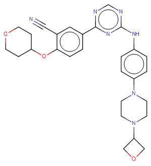 SMILESN#Cc1cc(ccc1OC1CCOCC1)-c1ncnc(Nc2ccc(cc2)N2CCN(CC2)C2COC2)n1