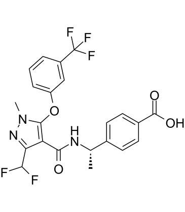 SMILESO=C(O)C1=CC=C([C@@H](NC(C2=C(OC3=CC=CC(C(F)(F)F)=C3)N(C)N=C2C(F)F)=O)C)C=C1