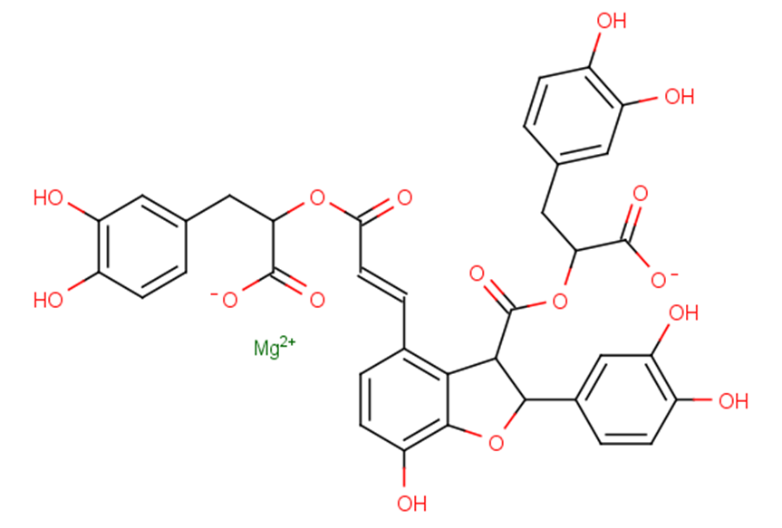 SMILES[Mg++].Oc1ccc(\C=C\C(=O)OC(Cc2ccc(O)c(O)c2)C([O-])=O)c2C(C(Oc12)c1ccc(O)c(O)c1)C(=O)OC(Cc1ccc(O)c(O)c1)C([O-])=O