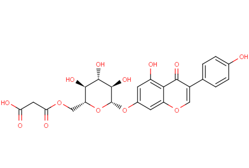 Brief Description6''-O-Malonylgenistin possesses a hepatoprotective activity.The isoflavone concentration in soybean samples was analyzed on a C 18 reverse-phase column using a two-step gradient solvent system.