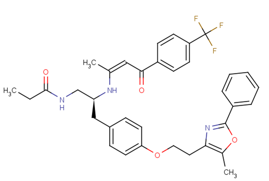 SMILESCCC(NC[C@@H](N/C(C)=C\C(C1=CC=C(C(F)(F)F)C=C1)=O)CC2=CC=C(OCCC3=C(C)OC(C4=CC=CC=C4)=N3)C=C2)=O