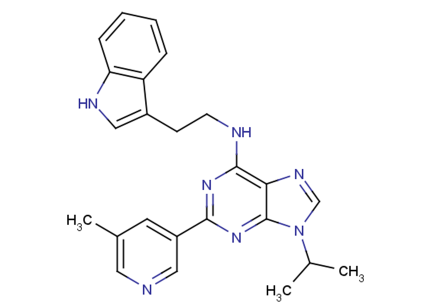 SMILESCC(C)n1cnc2c(NCCc3c[nH]c4ccccc34)nc(nc12)-c1cncc(C)c1